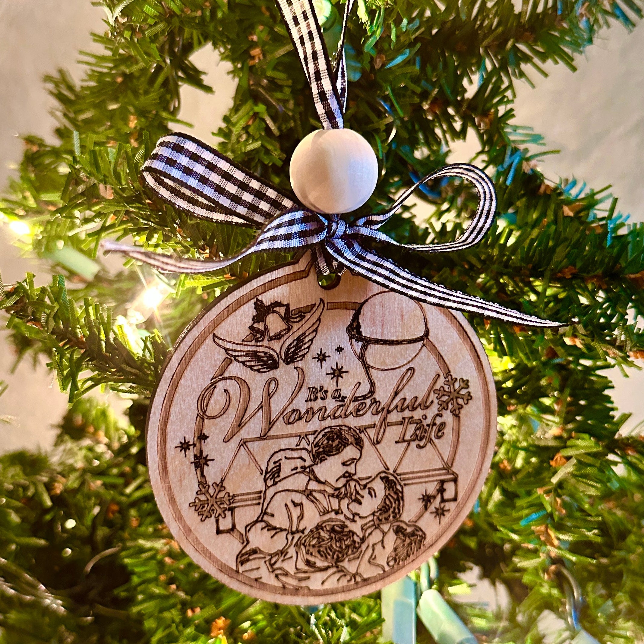 Our custom made It's A Wonderful Life Custom Wood Ornament features the beloved Bailey family from Bedford Falls as they gather around the Christmas tree to celebrate the gift of friends - and the help of an angel to find the true meaning in Christmas!